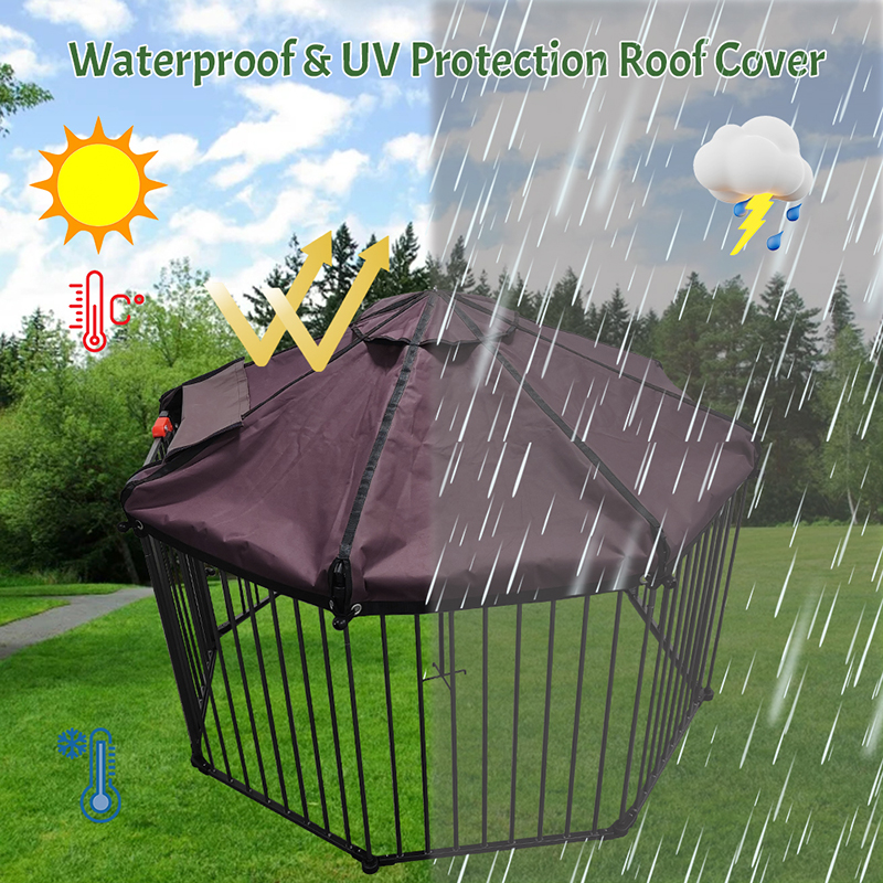 1. সমস্ত আবহাওয়া সুরক্ষা শীর্ষ: ইউভি প্রতিরোধী ওয়াটারপ্রুফ অক্সফোর্ড ফ্যাব্রিক ইলাস্টিক দড়ি ফিক্সিং সিস্টেম দিয়ে তৈরি টিউব বিগ কুকুরের খাঁচা কার্যকরভাবে সূর্য এবং বৃষ্টির বিরুদ্ধে রক্ষা করে, ইউভি প্রতিরোধী আবরণ স্থায়ী হয় এবং বিবর্ণ প্রতিরোধ করে।