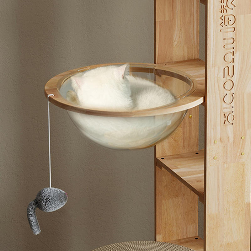 বহু-স্তরের কাঠের টাওয়ার কনডো ক্লাইম্বিং ফ্রেম বিড়াল গাছ